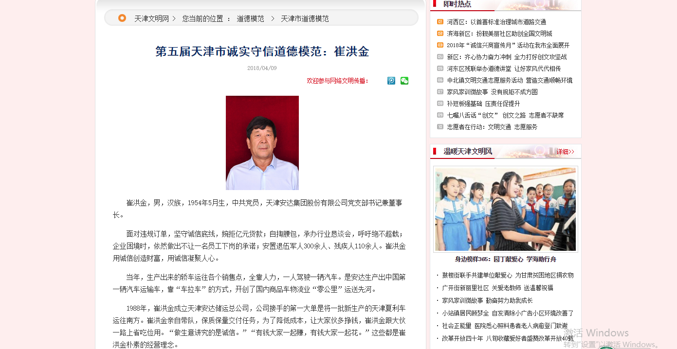 第五屆天津市誠(chéng)實(shí)守信道德模范:崔洪金