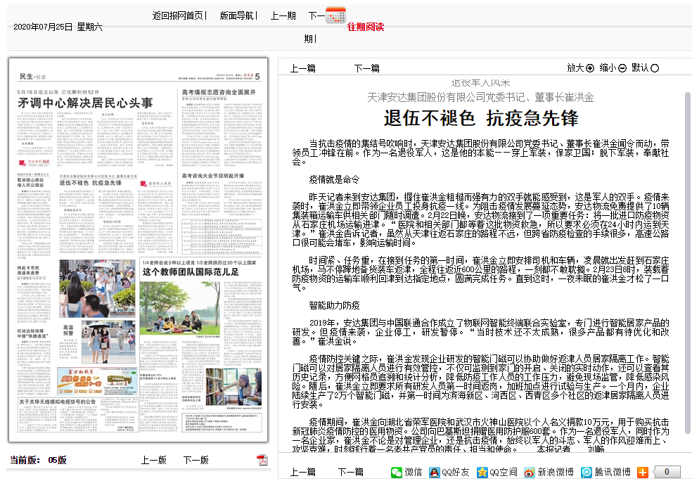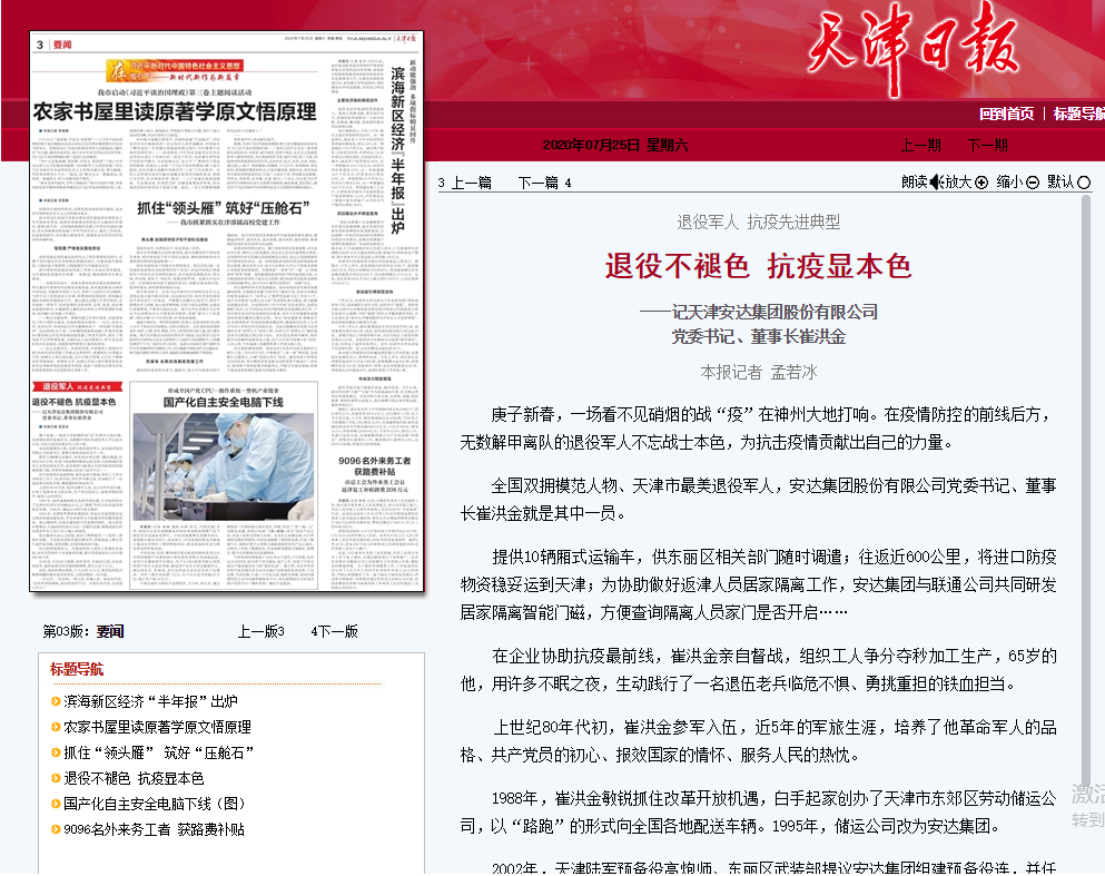 7月25日 《天津日?qǐng)?bào)》 退役不褪色 抗...
