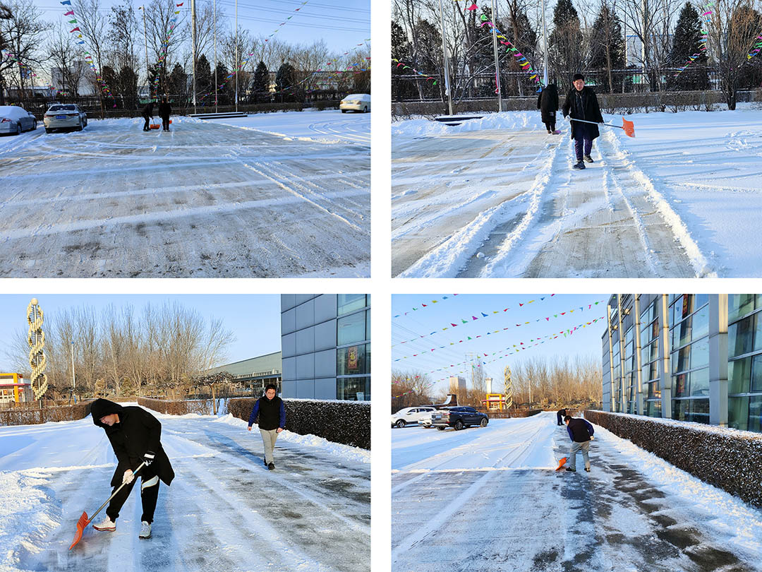 2月13日,虎年首場(chǎng)降雪如約而至,洋洋灑灑的雪花很快將安達(dá)集團(tuán)各廠院路面覆蓋。集團(tuán)各子公司以雪為令,立即行動(dòng)起來(lái)。各單位員工在相關(guān)領(lǐng)導(dǎo)帶領(lǐng)下,手拿鐵鍬、掃帚、簸箕等工具,對(duì)辦公樓門(mén)口和廠區(qū)內(nèi)重要點(diǎn)位、路面進(jìn)行積雪大清掃。積雪的清除,為員工和車(chē)輛出入提供了安全保障。寒風(fēng)襲襲,盡管大家凍得手腳冰涼,但全體員工齊心協(xié)作,相互配合,一派熱火朝天的除雪場(chǎng)景,甚是鼓舞人心。