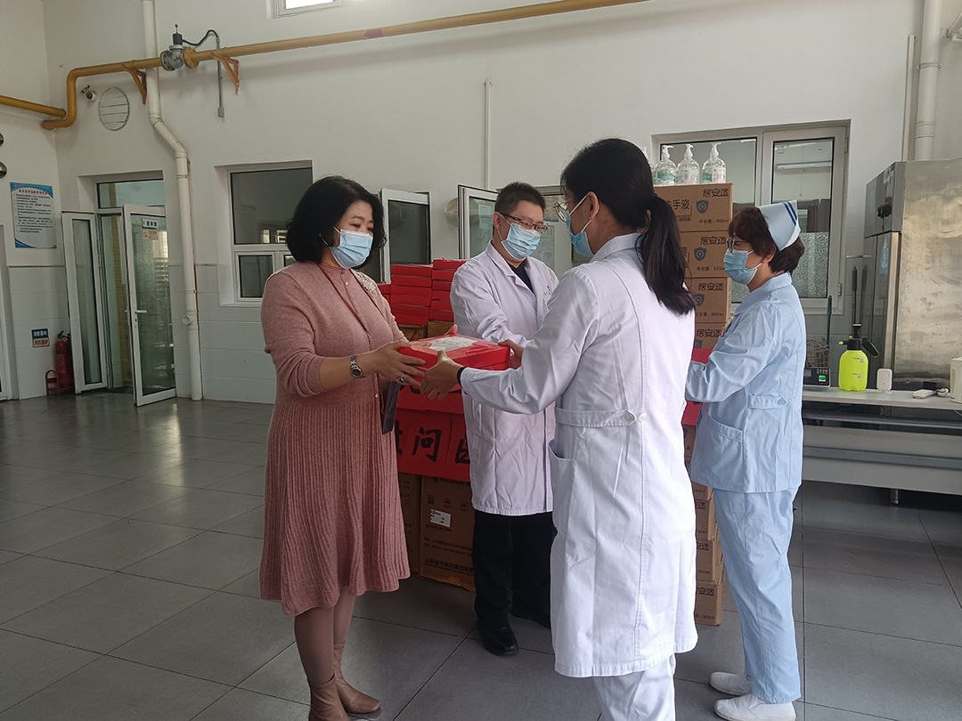 自9月疫情發生以來,天津安寧醫院醫護人員全力奮戰在疫情防控第一線,為筑牢疫情防控的“防護網”積極貢獻力量。為感謝醫護人員的辛勤付出,近日,天津楊兆蘭慈善基金會受安達集團黨委書記、董事長崔洪金委托,購買防疫物資向天津安寧醫院的醫護人員捐贈。崔洪金說:疫情無情人有情,協力共進克時艱。希望我們的小小善舉,能溫暖每一位醫護人員的心。