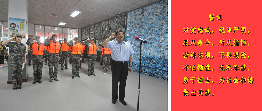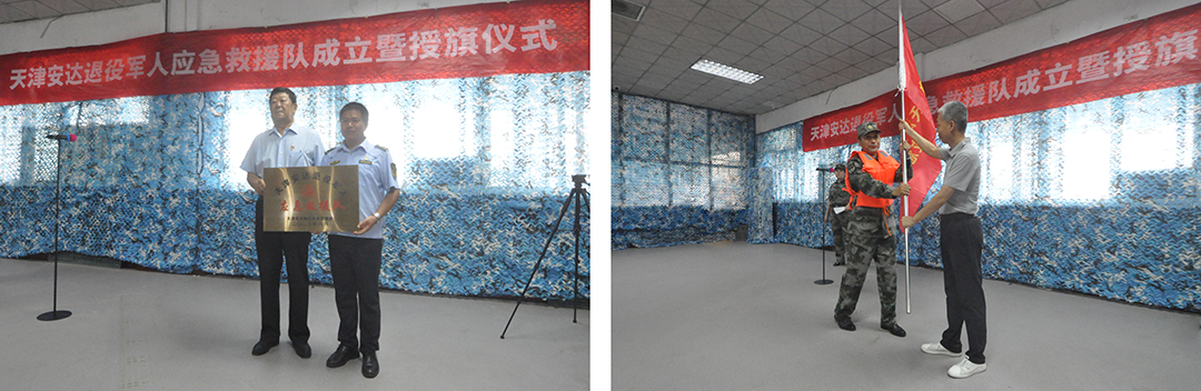 在主持人馬萍向崔洪金董事長(zhǎng)鏗鏘有力的請(qǐng)示后,活動(dòng)正式開(kāi)始。全體人員齊唱國(guó)歌,伴隨著嘹亮的歌聲,五星紅旗冉冉升起。隨后全體人員移步二樓退役軍人之家,在全體領(lǐng)導(dǎo)、安達(dá)職工及職工子弟的共同見(jiàn)證下,全國(guó)“最美擁軍人物”崔洪金宣布“天津安達(dá)退役軍人應(yīng)急救援隊(duì)”成立并帶領(lǐng)全體救援隊(duì)隊(duì)員宣誓。