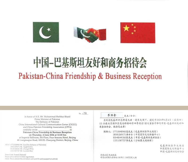 2024年6月6日,由巴基斯坦駐華使館、中國國際文化傳播中心和中國—巴基斯坦友好協會共同主辦的中國—巴基斯坦友好和商務招待會在京舉辦。正在中國訪問的巴基斯坦總理夏巴茲·謝里夫出席招待會并致辭。前聯合國副秘書長沙祖康、中國人民對外友好協會副會長李希奎、中國國際文化傳播中心執行主席龍宇翔,巴基斯坦副總理兼外長達爾、巴基斯坦駐華大使卡里爾·哈什米出席活動,安達集團黨委書記、董事長、中國愛心工作委員會副主席、中巴協會理事崔洪金,安達集團總經理崔文連受邀參會。