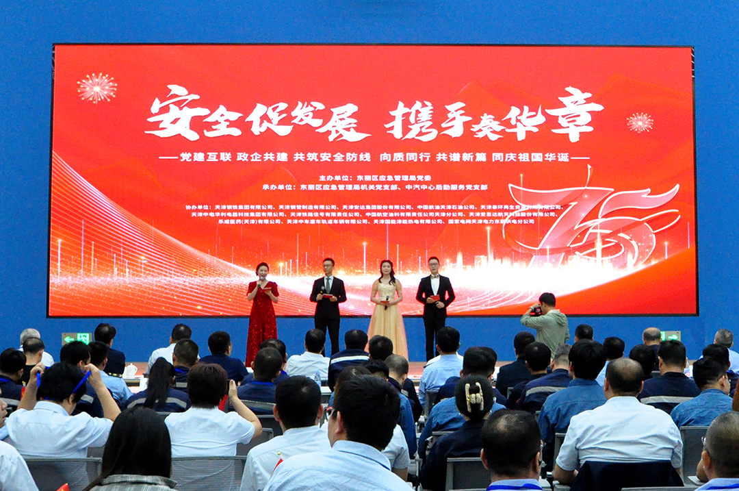 為充分發揮政企多元主體協同共治合力,以黨建引領企業安全發展新動能,強化安全意識,共筑安全防線。東麗區應急局黨委聯合危化、工貿、科創、國企、民營等5方面重點行業領域有影響力、引領性、代表性的13家黨建互聯共建企業在中國汽車技術研究中心有限公司報告廳,舉辦“安全促發展 攜手奏華章”慶祝新中國成立75周年聯歡會活動。各聯建企業領導、黨員代表、干部職工以及在應急領域眾多方面給予關心和指導的相關委辦局領導等200余人參加活動。區應急管理局黨委書記、局長辛長海同志致辭。安達集團黨委書記、董事長崔洪金、安達物流支部書記、總經理鄭玉強、安達集團黨委辦公室主任于忠杰作為特邀嘉賓出席活動。