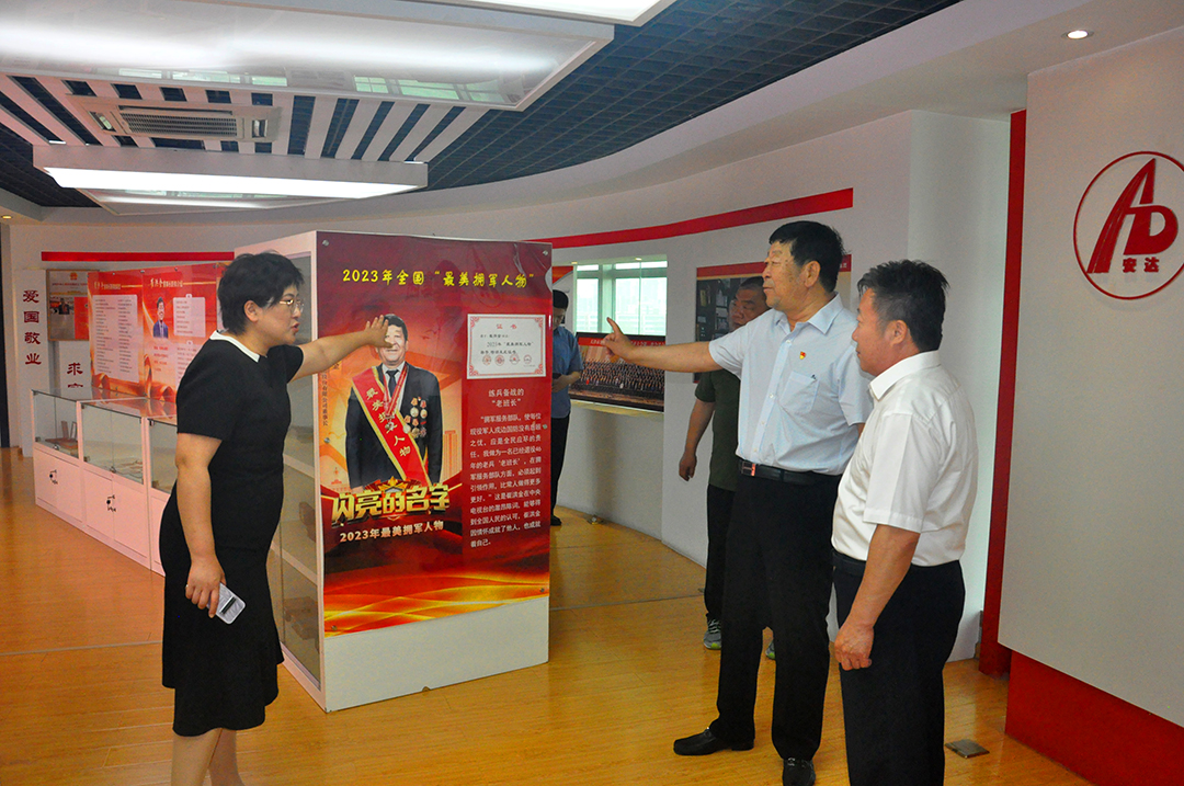 隨后,眾人移步至集團(tuán)的文化展廳。展示著安達(dá)集團(tuán)多年來的發(fā)展歷程、所獲榮譽(yù)以及履行社會(huì)責(zé)任的點(diǎn)點(diǎn)滴滴。陸福寬會(huì)長對(duì)安達(dá)集團(tuán)在擁軍優(yōu)屬方面做出的突出貢獻(xiàn)給予了高度評(píng)價(jià):“安達(dá)集團(tuán)不僅在企業(yè)經(jīng)營上成績斐然,更是在退役軍人就業(yè)創(chuàng)業(yè)、關(guān)愛幫扶等工作中發(fā)揮了示范引領(lǐng)作用,為全社會(huì)樹立了榜樣。”