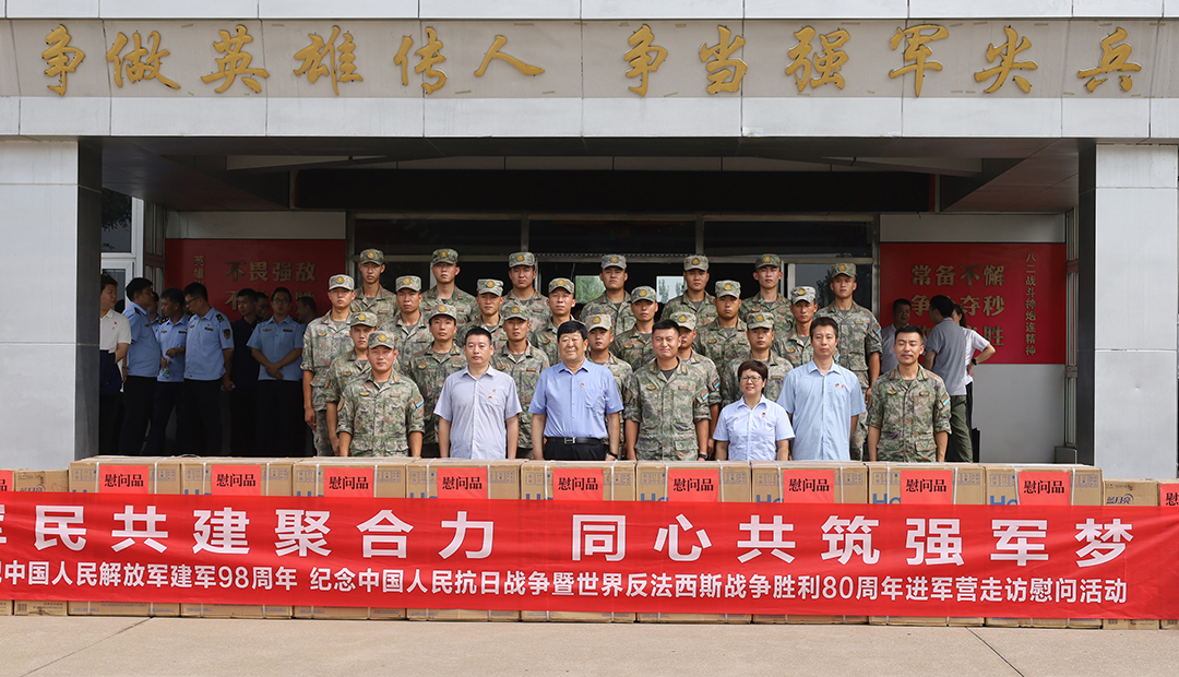 為慶祝中國人民解放軍建軍98周年,紀念中國人民抗日戰爭暨世界反法西斯戰爭勝利80周年,近日,東麗區應急管理局攜手 “1+3+10+N”黨建互聯共建單位的13家企業,走進駐區解放軍部隊,開展“軍民共建聚合力 同心共筑強軍夢”軍地共建、軍民互動進軍營走訪慰問活動。全國最美擁軍人物、區關愛退役軍人協會名譽會長、安達集團黨委書記、董事長崔洪金受邀參加此次活動。