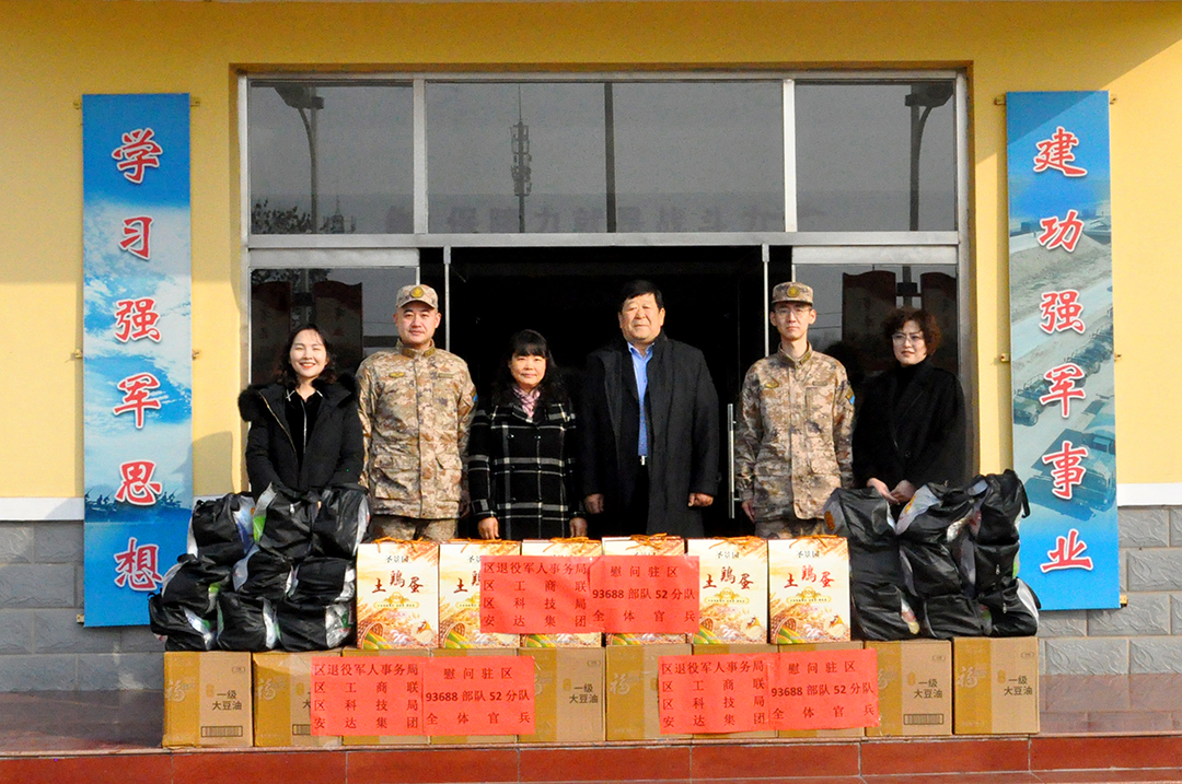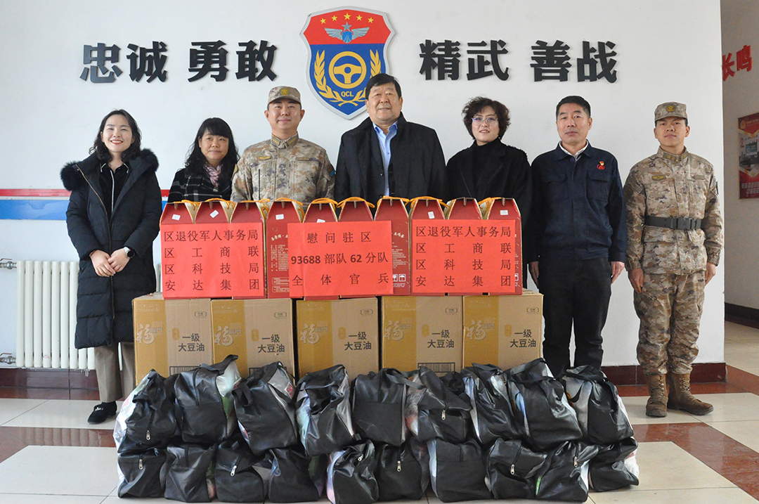 春節前夕,年味漸濃,關懷暖心。近日,全國最美擁軍人物、天津安達集團黨委書記、董事長崔洪金帶隊,聯合東麗區退役軍人事務局、區工商聯、區科技局相關領導,分別前往駐區93688部隊52分隊和62分隊開展新春慰問活動,向部隊官兵致以崇高敬意和誠摯的新春祝福,并為他們送去各類生活必需品,用實際行動續寫軍民魚水深情。